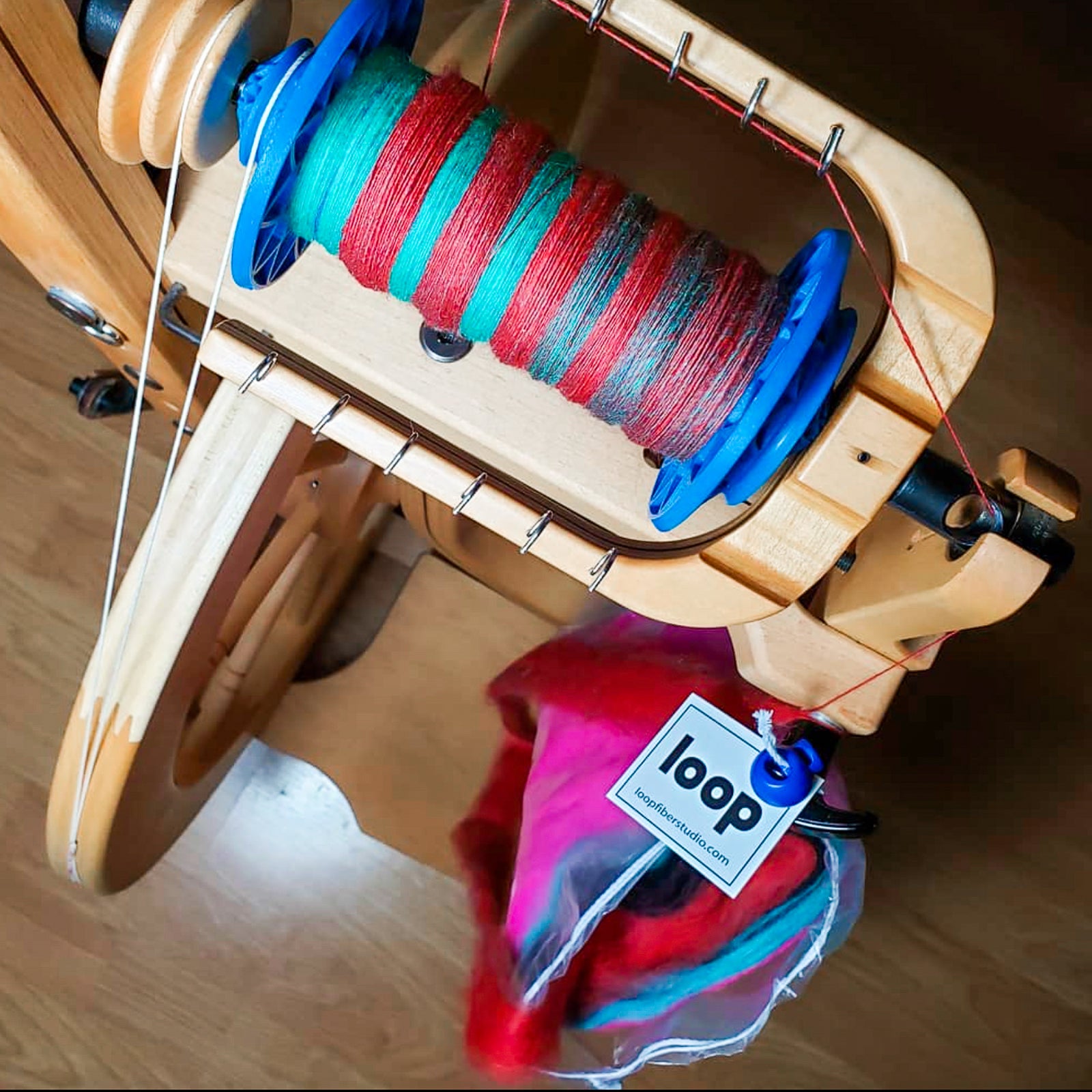 Loop’s signature Bullseye Bumps consist of one continuous strand of roving, wound into a center-pull bump.  Much like a center-pull ball of yarn, you simply pull the roving out from the center to spin it.